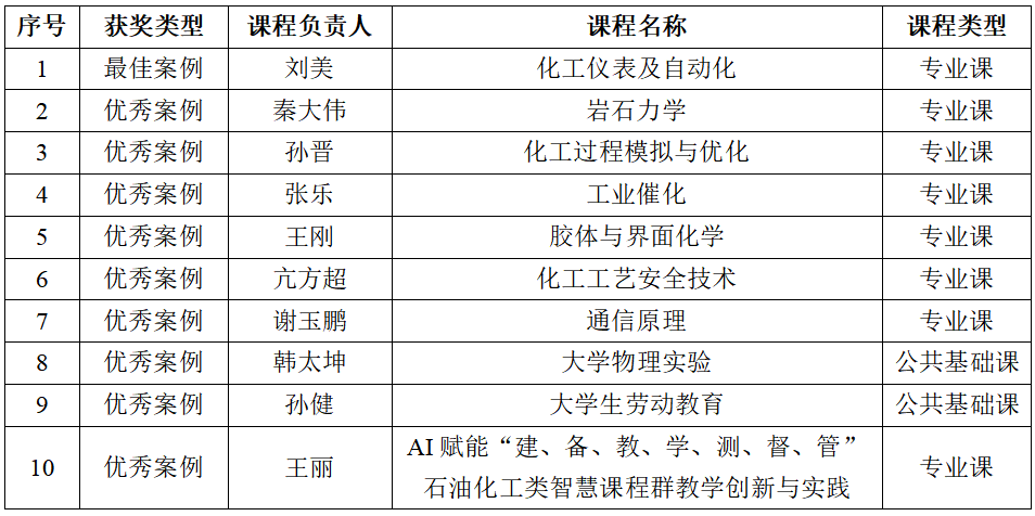 全国高校“智慧课程”案例征集评选获奖教师名单